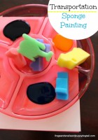 I found these fun transportation sponges at the dollar tree last year. I had a few ideas in mind for them when I bought them. I was not sure which one I would end up trying. The other day while needing to entertain my oldest tot,