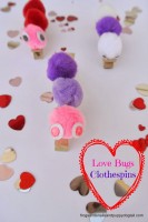 I was looking for a simple yet fun craft to do with the kids. We made caterpillar clothespins before and I thought a Love Bug theme for Valentine’s Day could be fun. So we set out to create our own clothespin love bugs.
